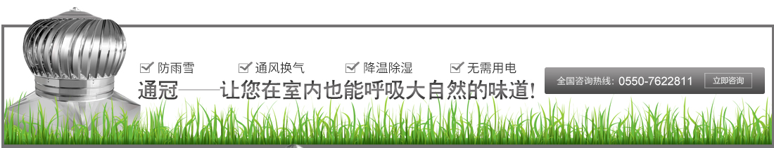 天長(zhǎng)市通冠無動(dòng)力風(fēng)機(jī)有限公司,是集研發(fā)、生產(chǎn)、銷售于一體的,專業(yè)無動(dòng)力風(fēng)機(jī)生產(chǎn)廠家。公司坐落于205國道南京與揚(yáng)州之間,位于省級(jí)高新經(jīng)濟(jì)技術(shù)工業(yè)園,交通便利。“通冠”有著一支技術(shù)精湛、服務(wù)非凡的隊(duì)伍。所有一線技術(shù)工人技術(shù)熟練、質(zhì)量意識(shí)強(qiáng)。公司嚴(yán)格執(zhí)行ISO9000質(zhì)量管理體系,一貫貫徹“以質(zhì)量為生命”、“以信譽(yù)為根本”、“以服務(wù)為基礎(chǔ)”的理念···[查看詳細(xì)]